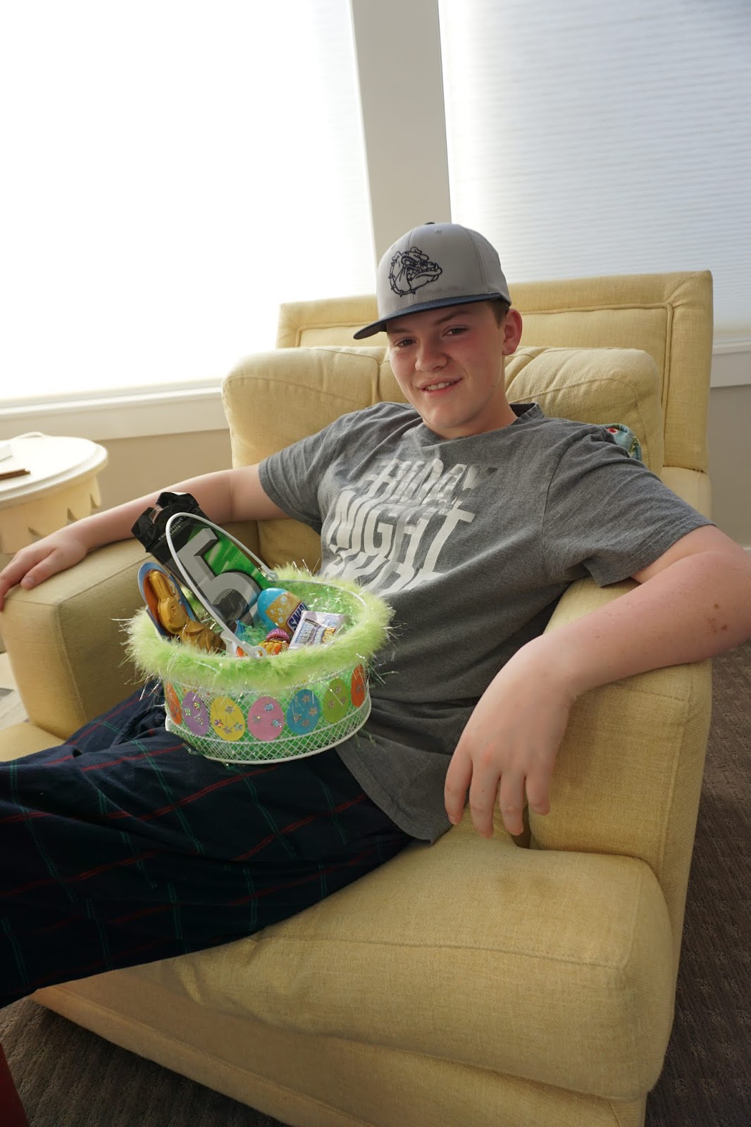 Sidney and Brook went up to SLC early for the morning session of conference so she wasn't there when the other kids got up. But as soon as she got home, she got her basket and clothes. I had given them several new outfits and swimsuits for our upcoming beach house vacation. We were all packed and ready to head out to California for our spring break trip as soon as Sidney got home!