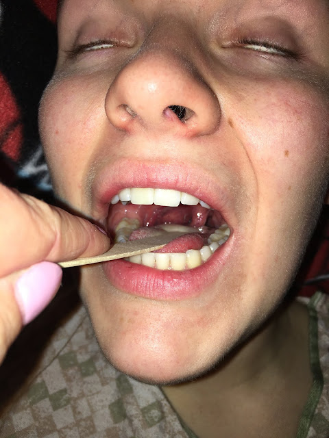 My sweet Caden started to feel sick last Saturday, Feb 8th. On Sunday he started to feed her and he ended up staying home from school the whole week. We thought he had strep throat and started him on a Z pack. Unfortunately azithromycin does nothing for strep throat. 🤷🏼♀️ We didn’t know. He continued to fever and his throat was killing him. I took him to the doctor the following Thursday. Dr. Miller said his throat was really swollen and put him on a high dose of Augmentin. The next morning, Dr Miller called me to see if Cade was feeling any better at all. I let him know that careful the exact same. He told us to bring him right in. Jeffy brought him over and Dr. Miller took one look in his throat and admitted him straight into the hospital. He had developed staff in his throat and was totally dehydrated. Both of his tonsils were swollen, but his right tonsil is so hugely swollen, that it was pushing his uvula to the side. Dr. Ence, an ENT, came to his room and you said a giant, fat needle to drain the abscess. He sucked a bunch of infection out with one needle then had to stick a second one in and drain more. It hurt poor Mr. Skittels so bad. 😢 Tears just rolled off his cheeks, but by that evening he was feeling so much better! They put him on yet another anabiotic, his third one and pumped him full of fluids. His fever finally broke and by the next afternoon, which was Saturday, Feb 15th, a full week of being super sick, he was able to go home! And believe it or not, two hours after he got home, if he left on his date for Sweethearts!