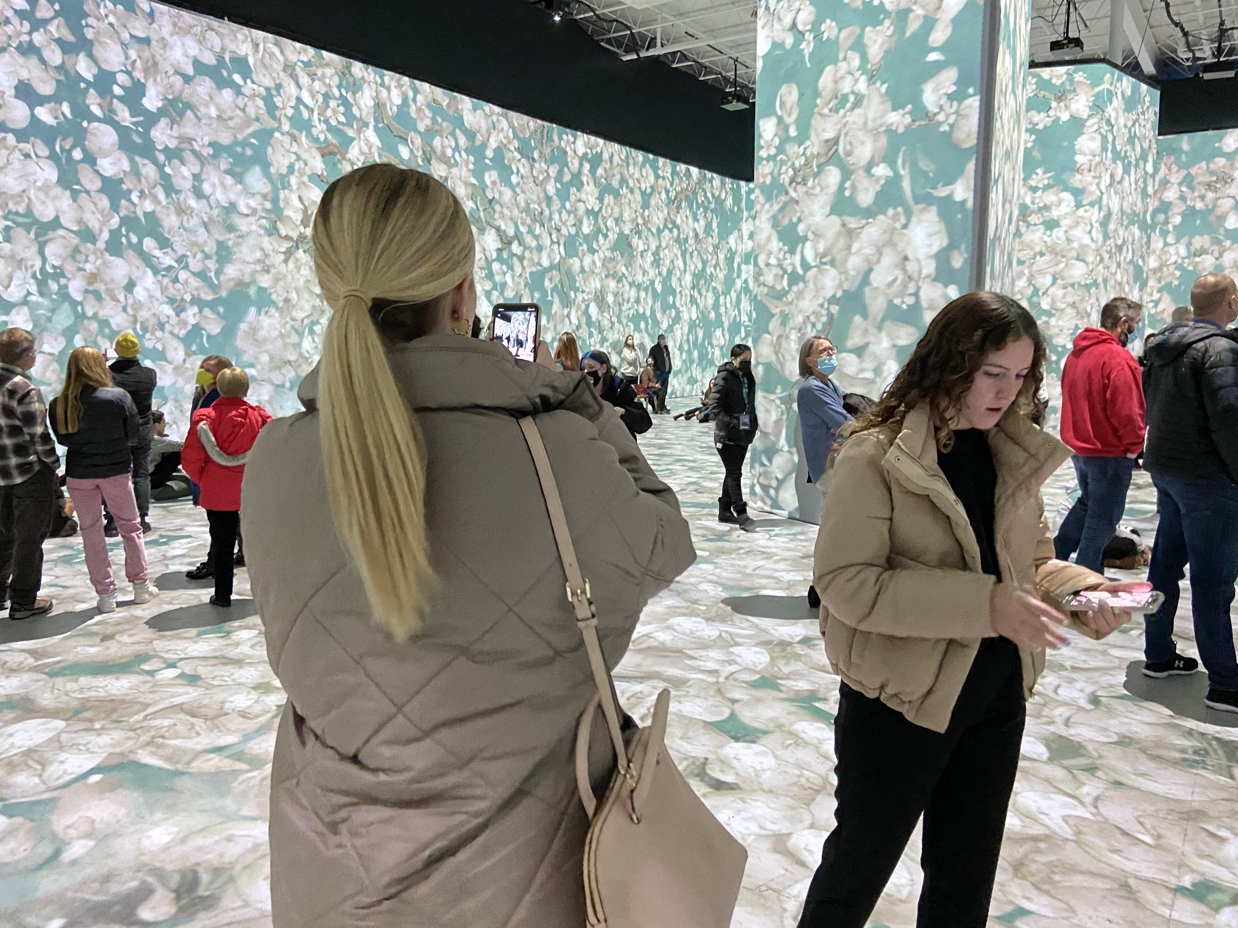 The girls and I went to the Vincent van Gogh exhibit in Salt Lake. It was so neat! It was interactive and entertaining and we loved it. The first part was an area that had biographies written up on his life. You snaked your way through reading about his life, then went into one giant room that had partitions of a sort set up that his artwork was portrayed on. It was portrayed on the partitions, the walls and the floor and they moved and changed. The portraits would blink and if the portrait happened to have a person smoking a cigar, pipe or cigarette, the smoke would be circling around and up. It was so fascinating!